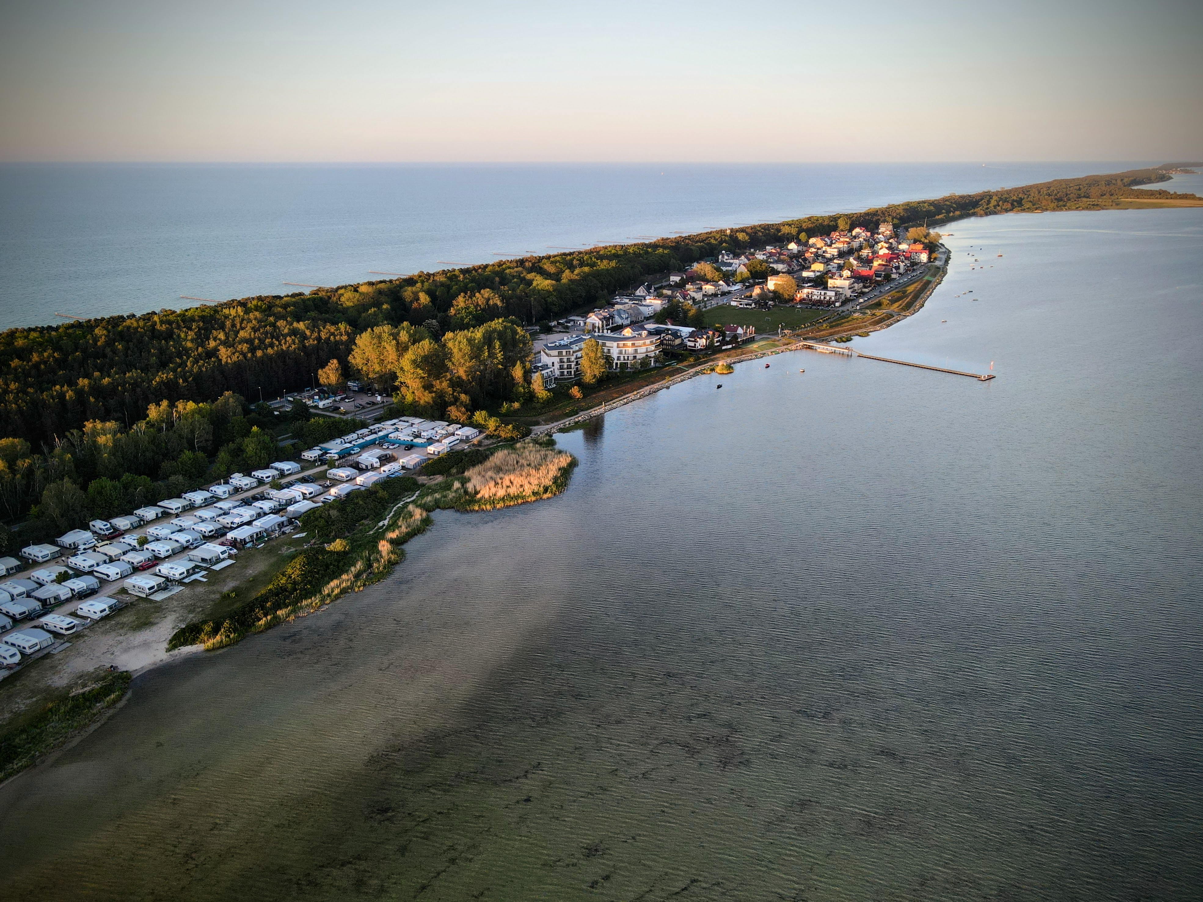 Linia brzegowa Chałup od strony morza. Zatoka Pucka po prawej stronie