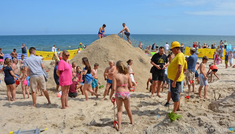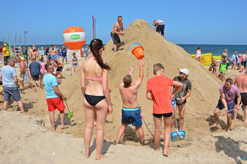 Dziesięcioosobowa ekipa do budowania używa największych łopatek z firmy Wader. Podczas Plażowych Mistrzostw Budowniczych na plażowiczów i turystów czekała Strefa Kolorów Zdrowia Marwit.